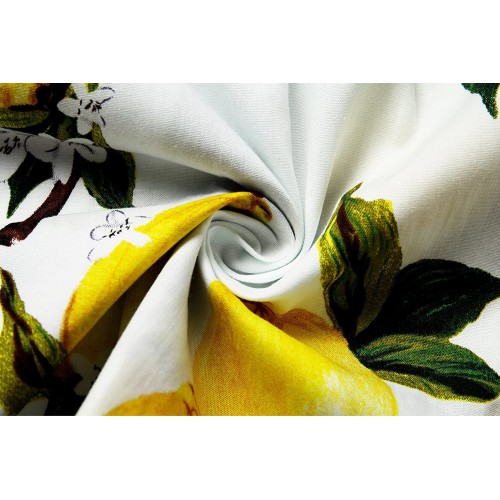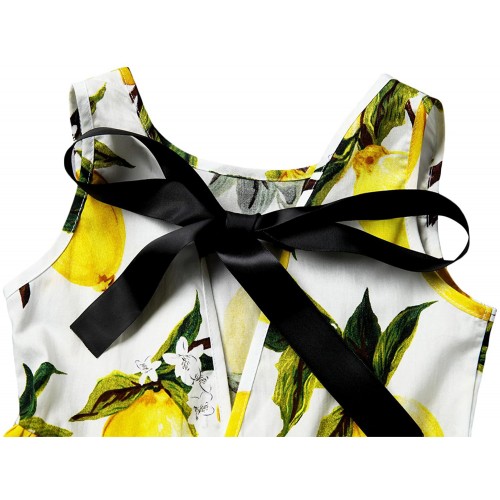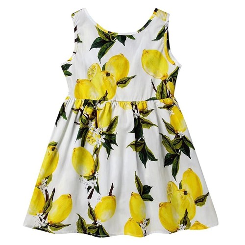 Pattern:Tank beach party dress, white lemon printed,knee-length.