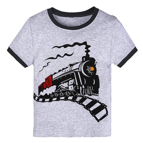 Pattern:Excavator and train print; gray and blue; crew neck; no fading, cracking, peeling or pilling; pull-on.