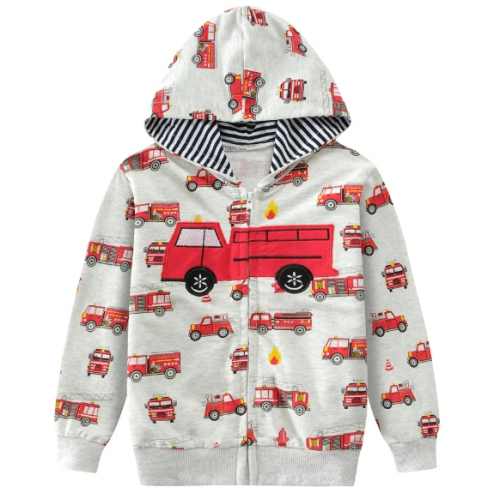 Boys truck print hoodie sweatshirt, white and red coat, easy to put on and take off. Suitable outerwear for Spring, Autumn and Winter.