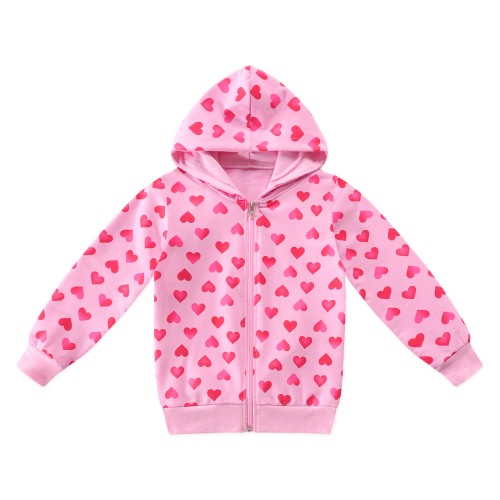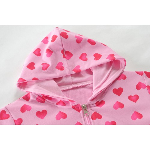 Toddler girls zip-up jacket cotton sweatshirts pink Valentine's Day heart print hoodie sweatshirt little kids long sleeve sweatshirts size 2 - 7T