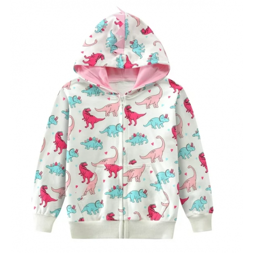 Toddler girls cotton sweatshirts jacket front zipper long sleeve sport hoodie active shirts dinosaur hoodies for little girl