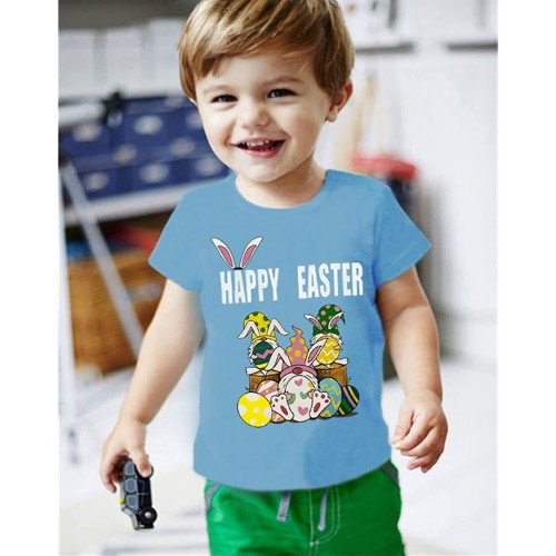 Toddler Boys Easter T-Shirts Rabbit Print Summer Cotton Tops Size 2 - 7T