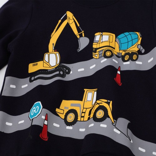 Cm-Kid Toddler Boys Excavator Sweatshirts Cartoon Long Sleeve Tops