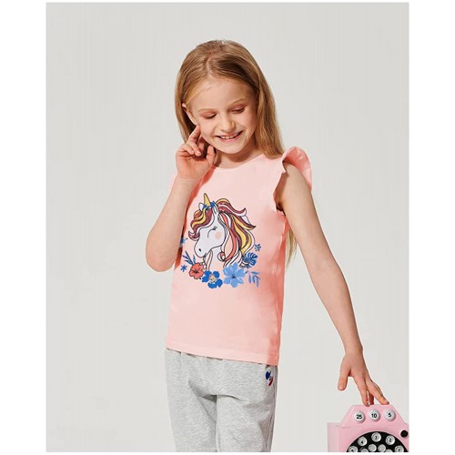 CM-Kid Toddler Girls Short Sleeveless T-shirt Unicorn Print Tops
